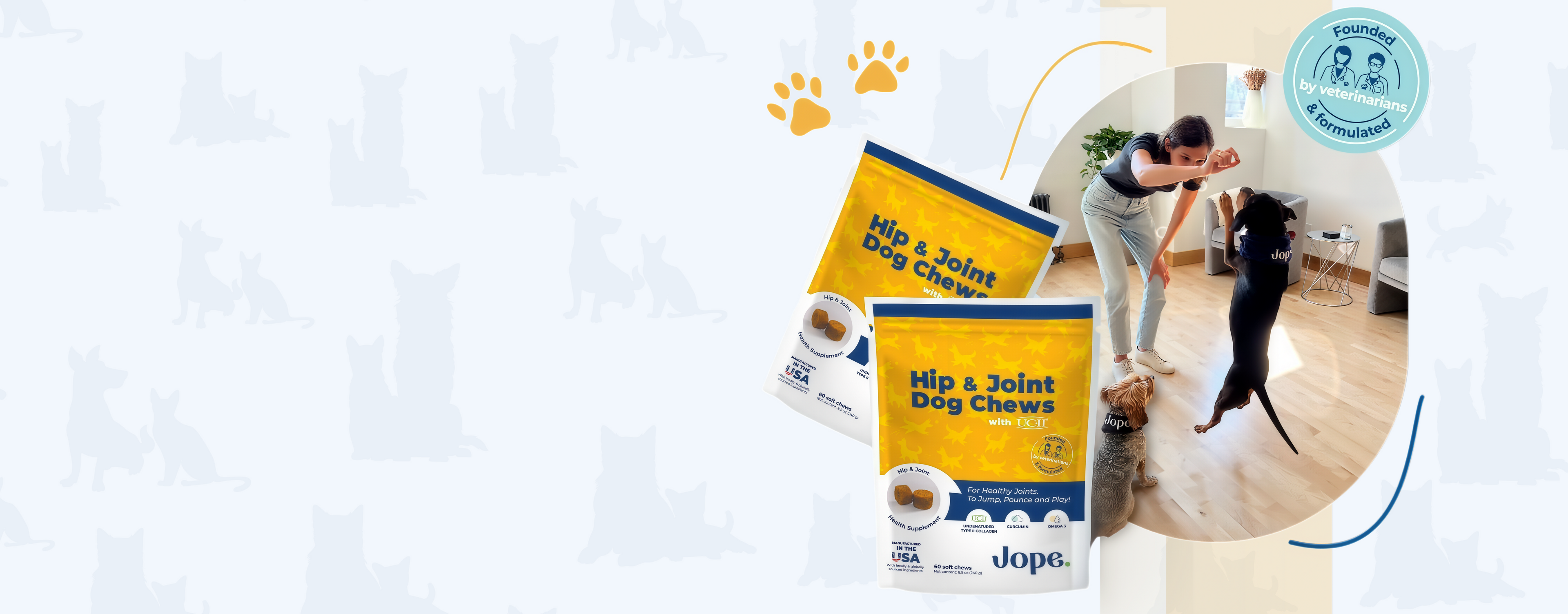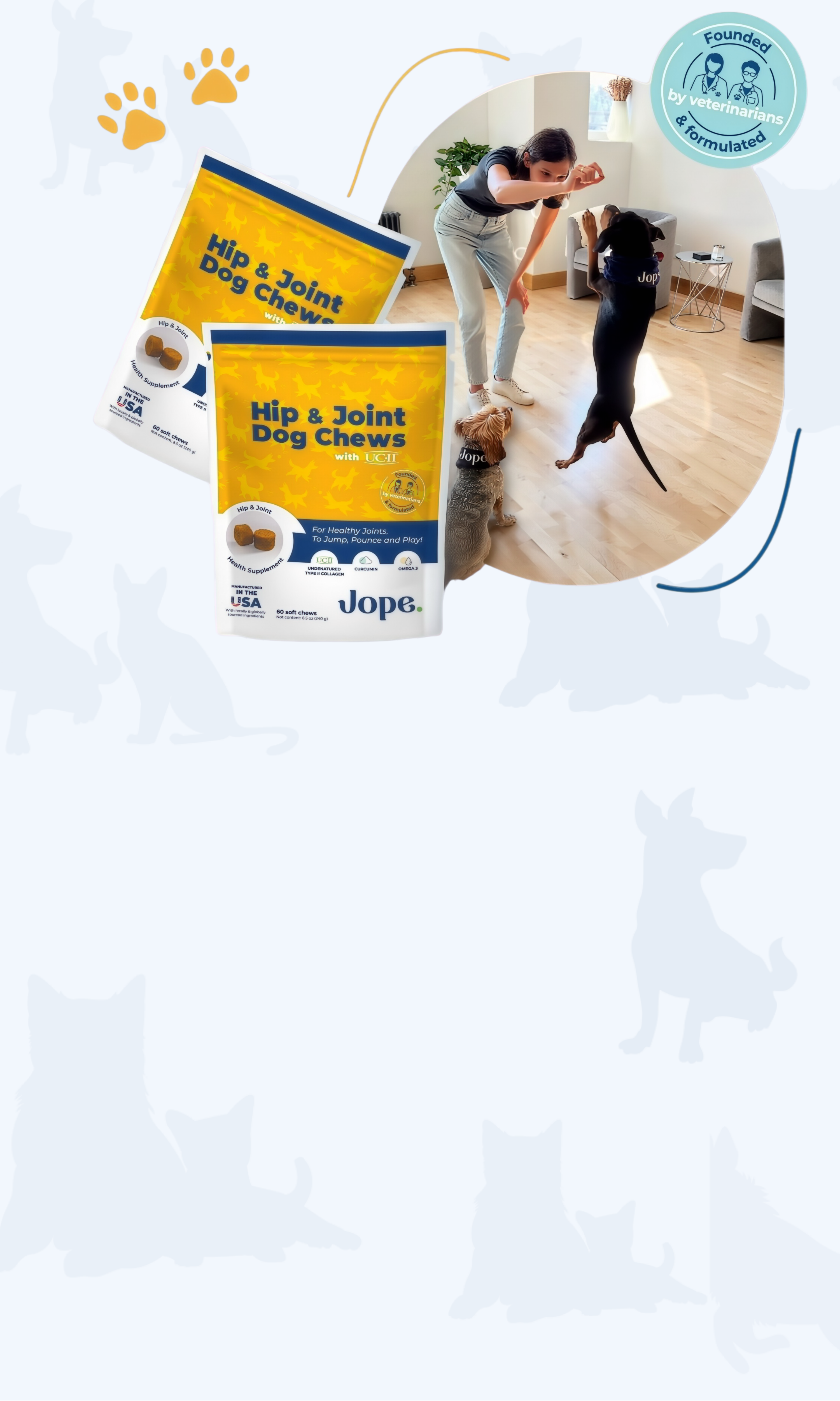 Transform your dog’s life in just 3 weeks! Harness the power of UC-II collagen and experience superior results with greater efficacy than glucosamine and chondroitin. Jope’s hip and joint chews are for every dog.